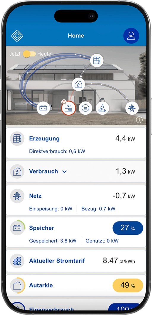 • Einfache Steuerung via App (PV, Speicher, Wallbox, Stromtarife)